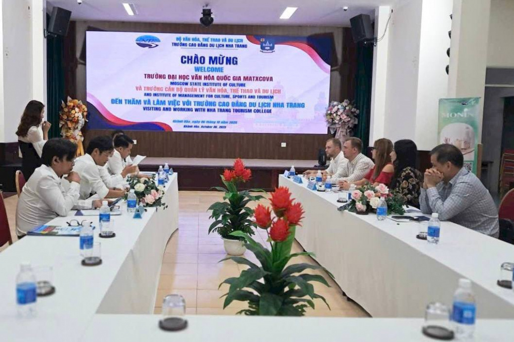 Делегация Московского государственного института культуры в составе проректора по международной деятельности Василия Николаевича Бурдонского, советника ректора Артема Евгеньевича Камбарова и начальника отдела международного сотрудничества Кристины Михайловны Михайличенко 6 октября 2025 года в рамках рабочего визита во Вьетнам посетила Туристический колледж Нячанг (город Нячанг, провинция Кханьхоа) и провела переговоры с руководством Института менеджмента культуры, спорта и туризма.