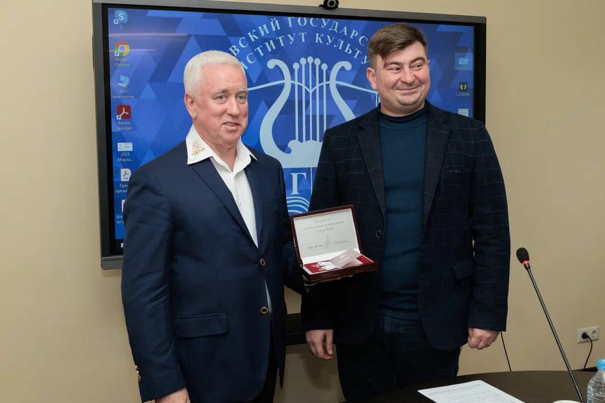 28 октября 2025 года на заседании Учёного совета и.о. ректора МГИК Дмитрий Сергеевич Сидоров вручил нагрудный знак «Почётный работник культуры города Москвы» профессору кафедры музыкального образования, доктору культурологии Валерию Анатольевичу Есакову.