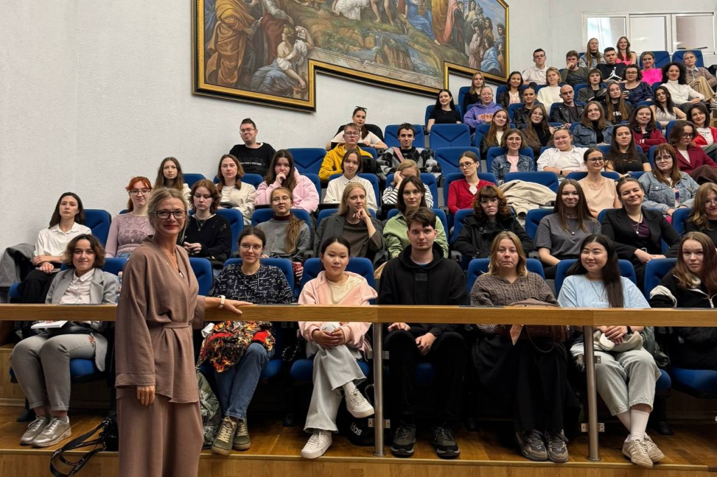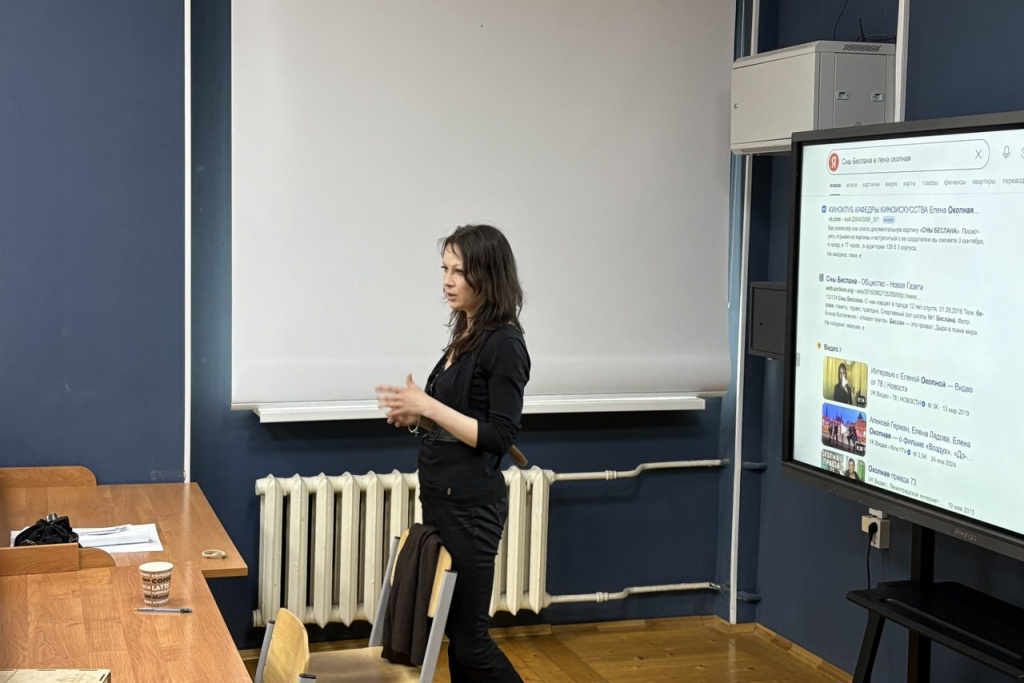 В 17:00 в 128 аудитории 3 корпуса состоялась встреча с российским художником-постановщиком, художником по костюмам, режиссёром и продюсером Еленой Окопной. В настоящее время Елена снимает кинокартину «Сны Беслана», посвященную трагическим событиям 2004 года.