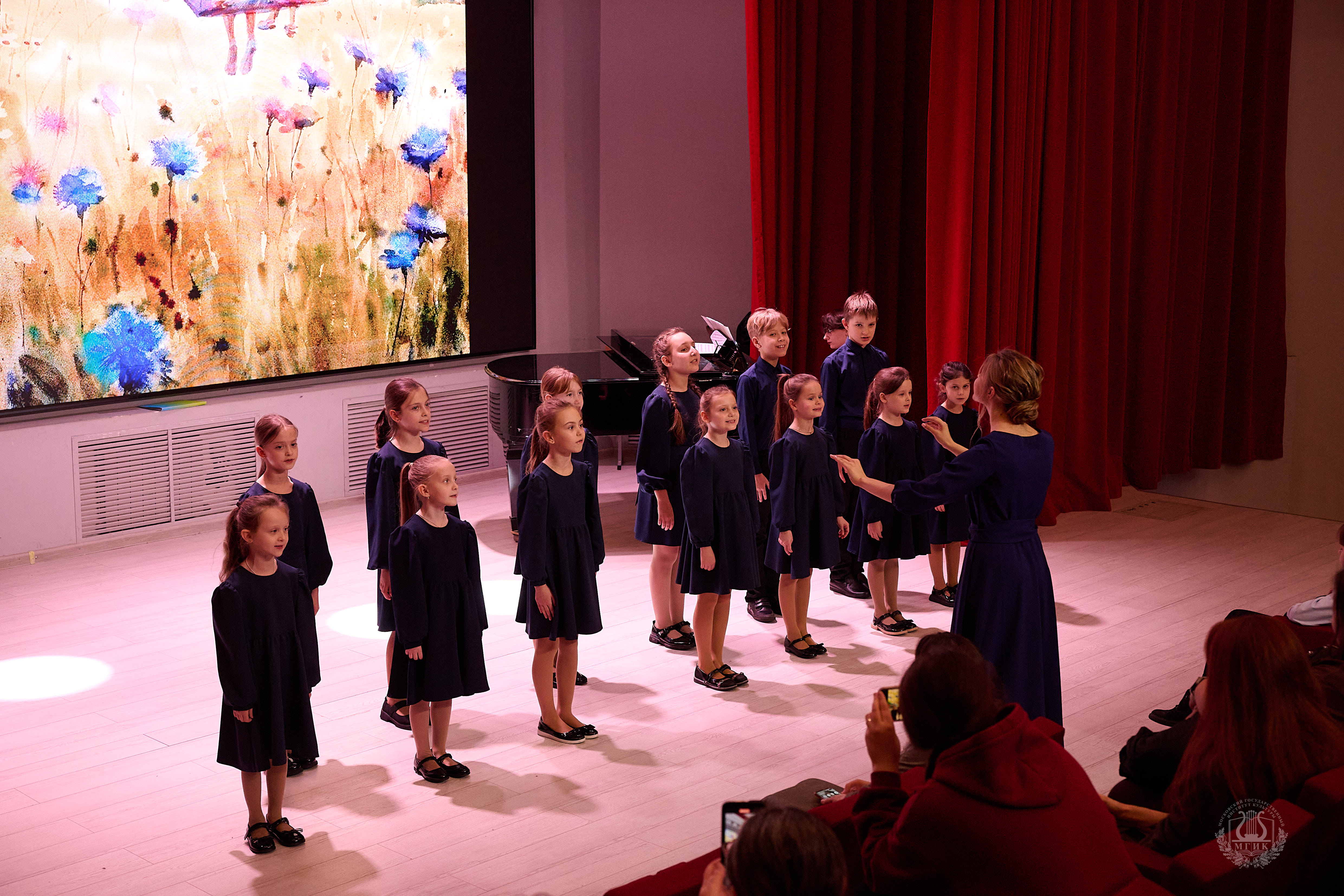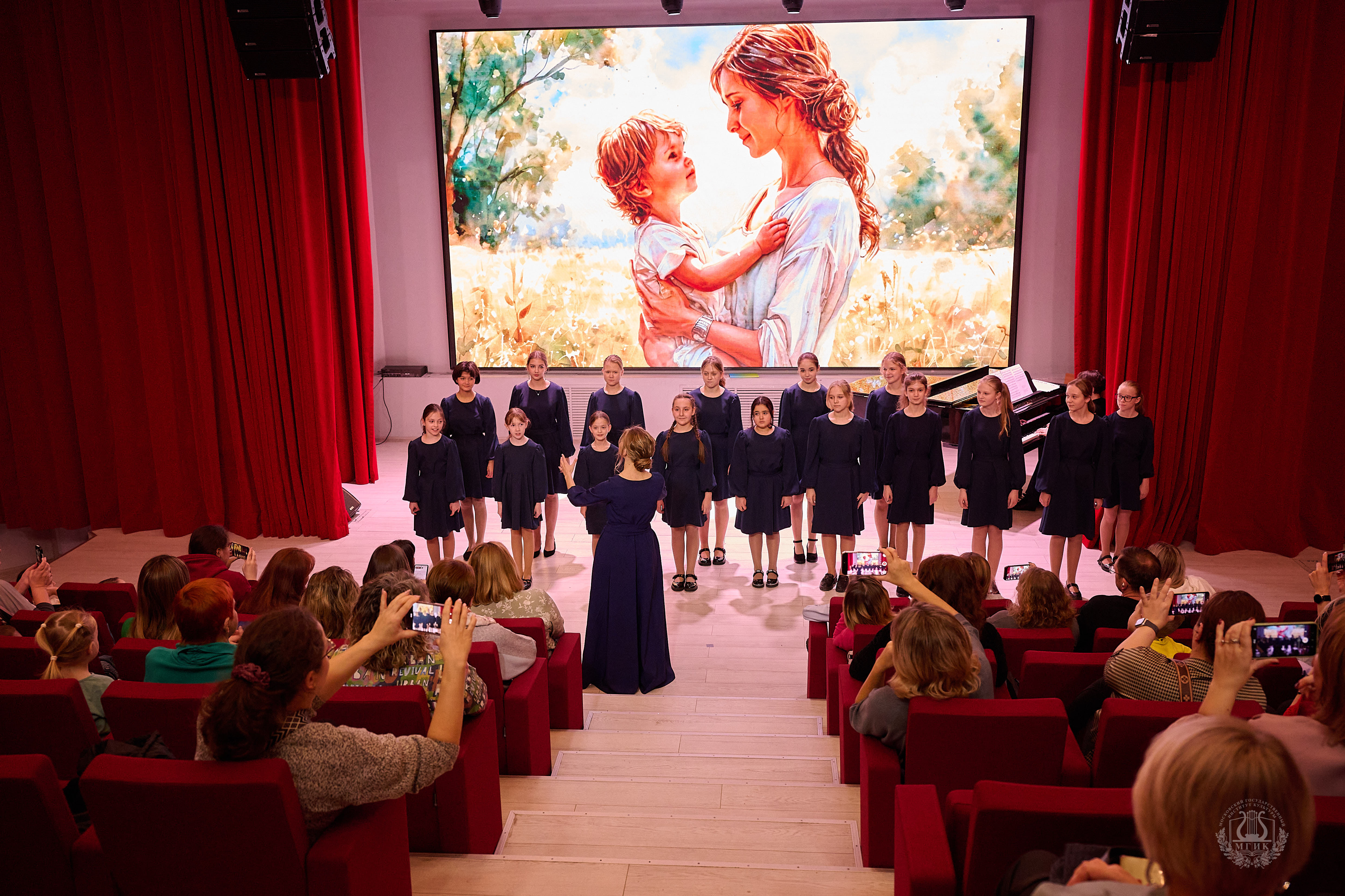 В Красном зале МГИК собрались юные артисты, чтобы поздравить всех мам, бабушек и гостей мероприятия, и подарить им праздничное настроение и тёплые слова.